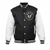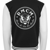 Black Windbreaker jacket with hoodie, white zippers, white front print, back is blank.